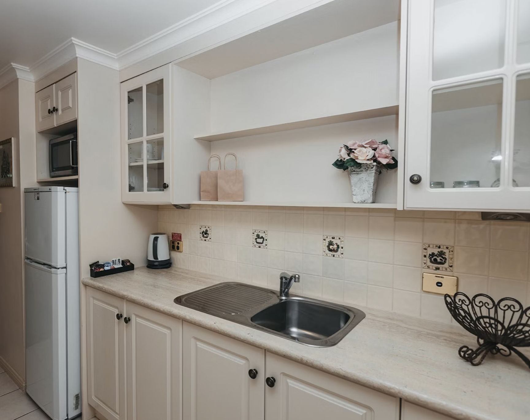 Kitchenette - Fridge with Freezer, Microwave, Toaster, Kettle, Tea & Coffee, Cutlery & Crockery.